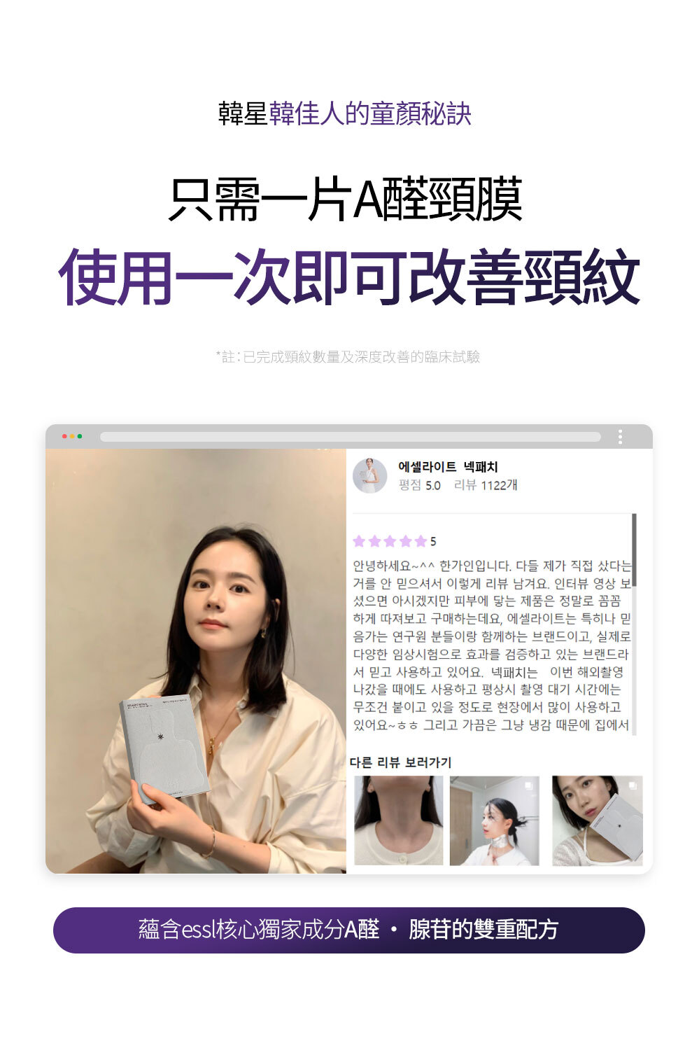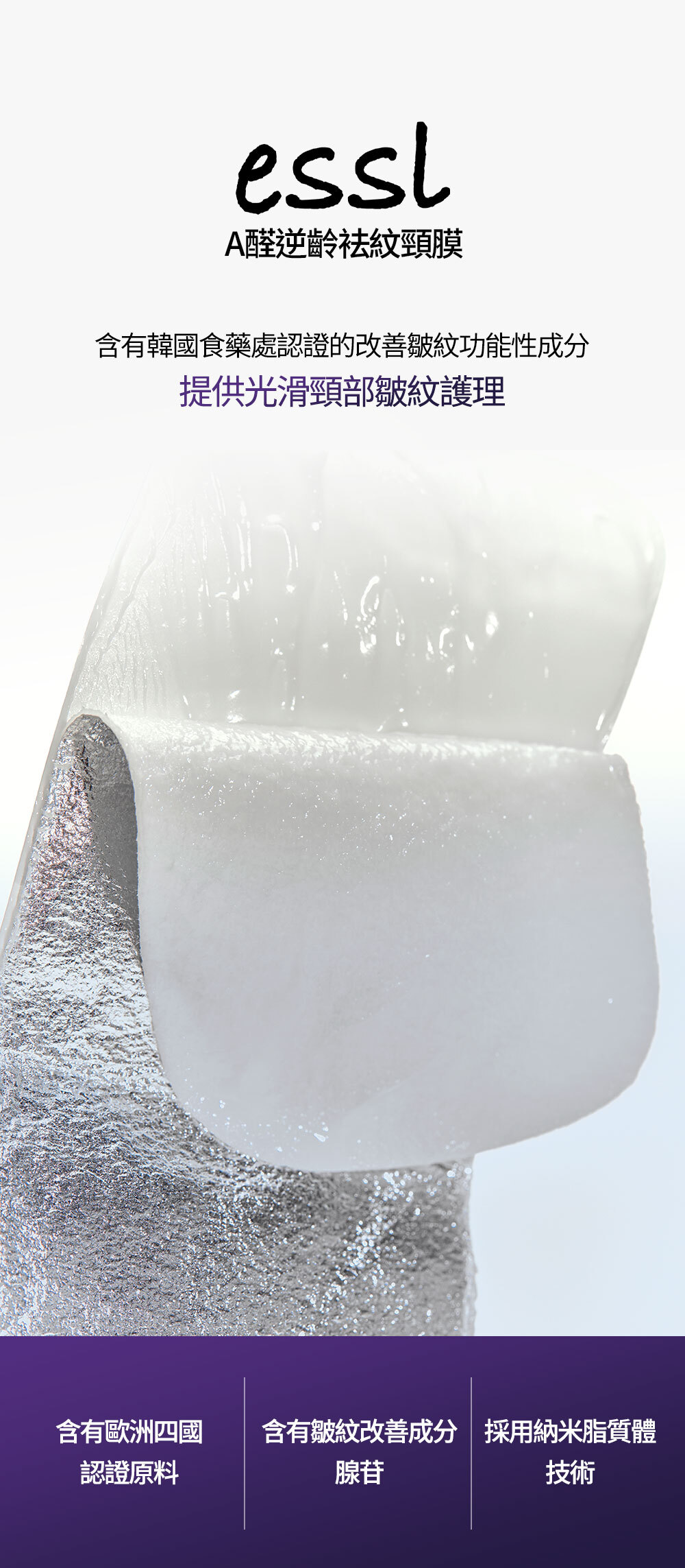 ✔️ 韓國食藥署認證的抗皺成分 專注於淡化頸部皺紋