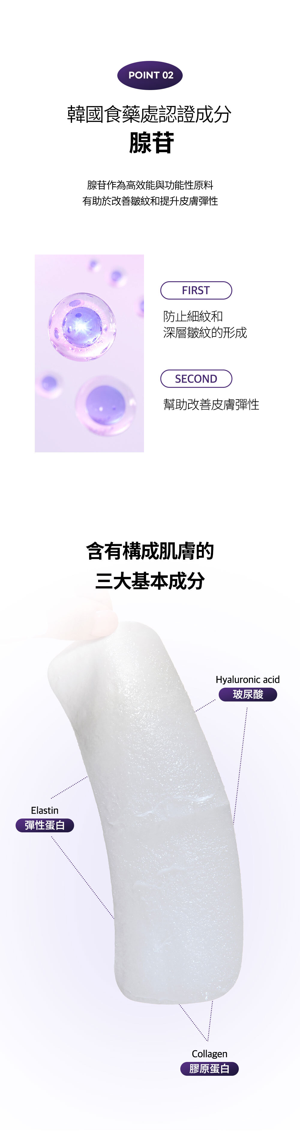 ✔️ 含有提升肌膚彈性的三大有效成分