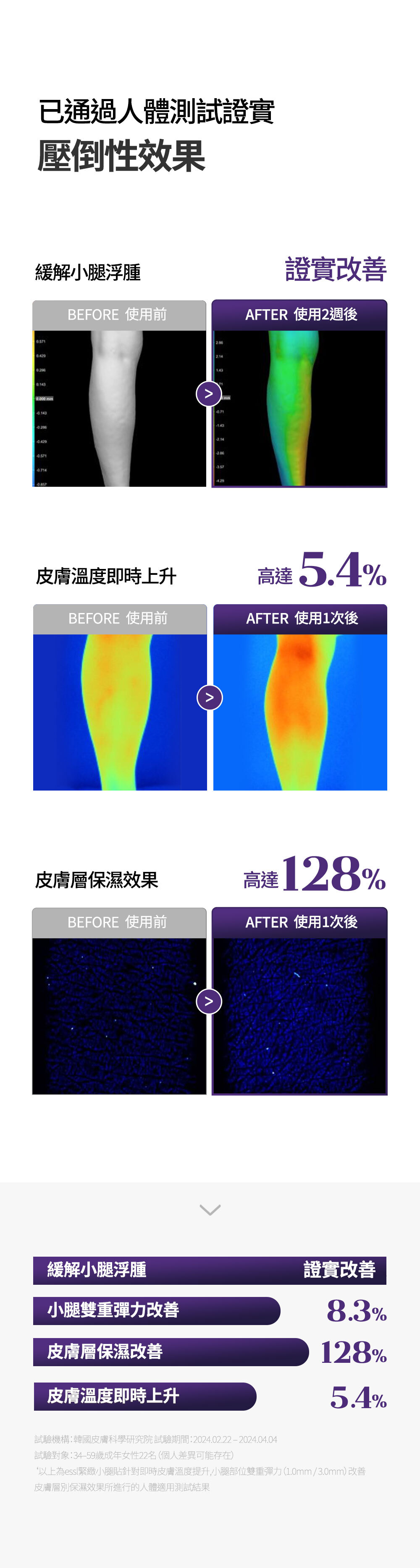 ✔️ 通過人體適用試驗證明 可消腫和改善彈力問題